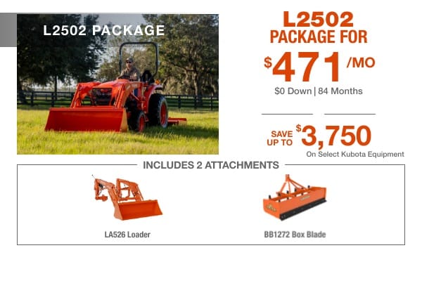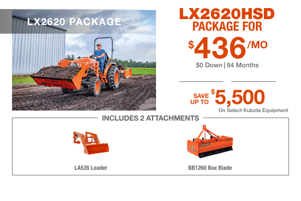 TAKE ADVANTAGE OF OUR EXCLUSIVE OFFERS ON SELECT KUBOTA PRODUCTS.